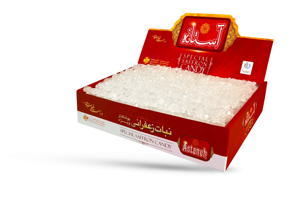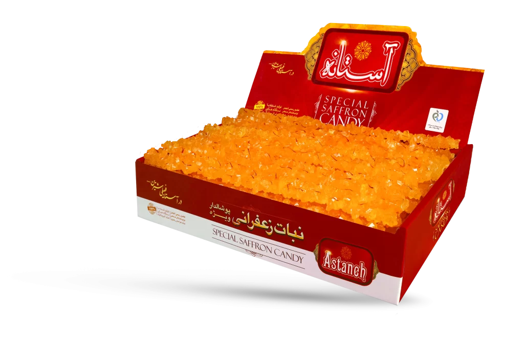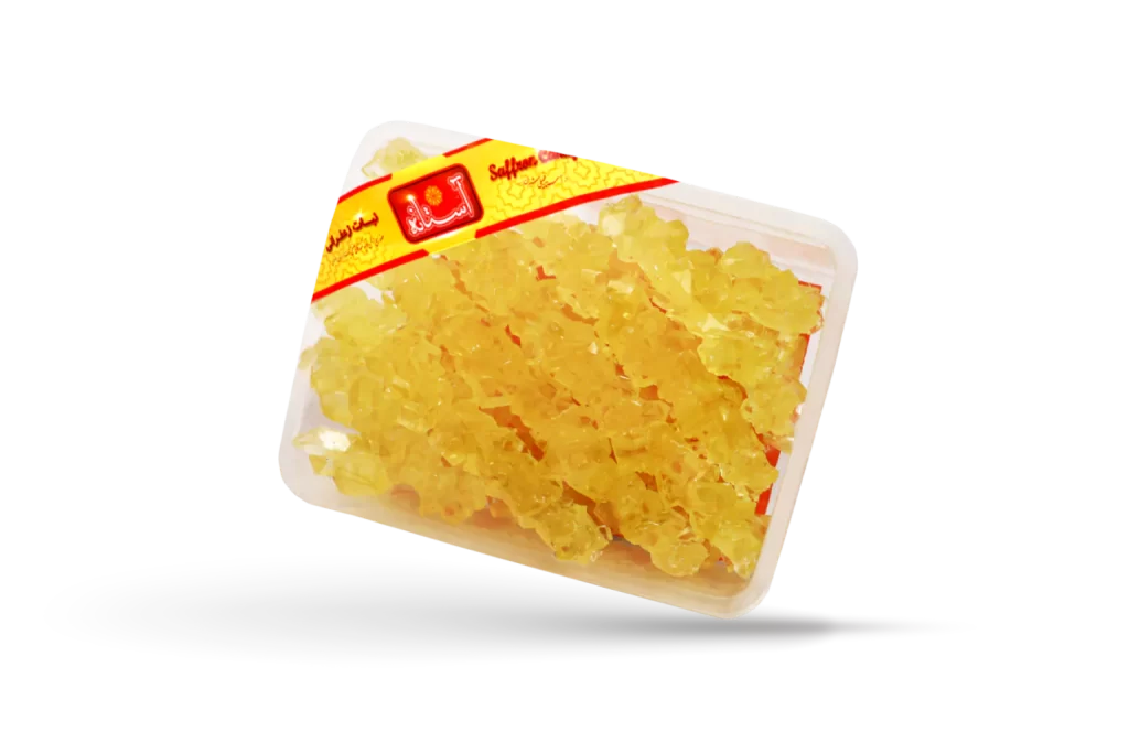 نبات زعفرانی ویژه ترکیبی از شکر خالص و زعفران درجه یک ایرانی است، که کاملا بهداشتی تهیه شده و دارای طعم و رنگ طبیعی زعفران میباشد.
