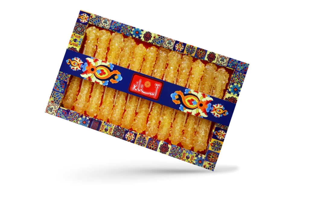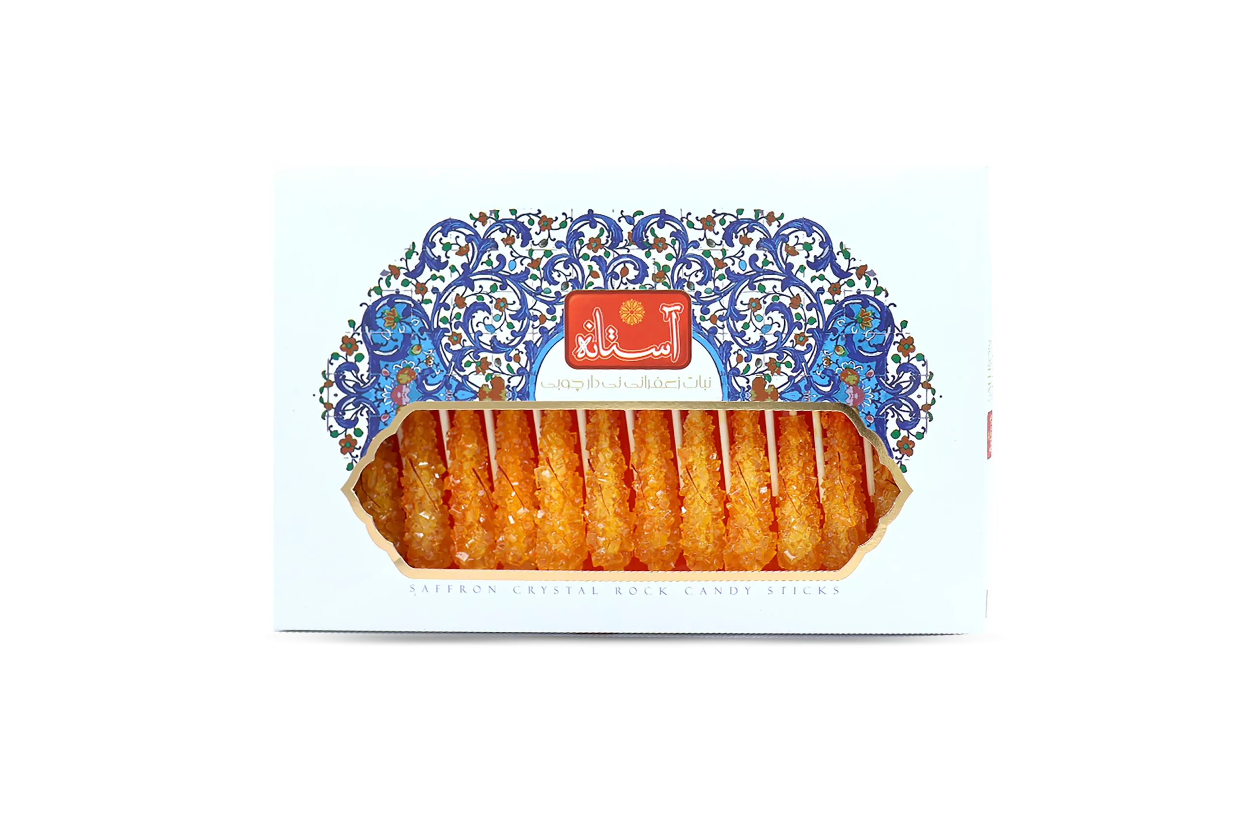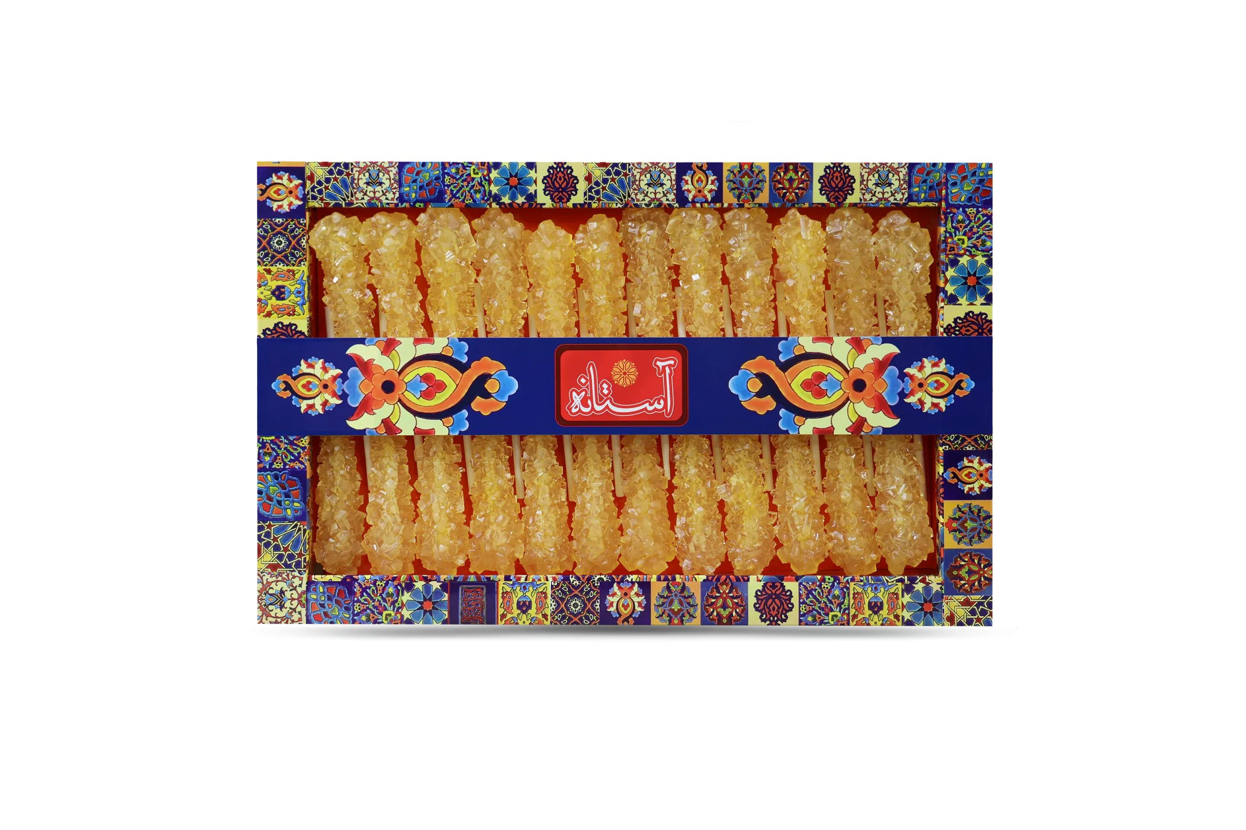 محصولی پرطرفدار با بلور و کریستال‌های درشت و شفاف است که از ترکیب شکر مرغوب و آب اشامیدنی و زعفران خالص تهیه می‌شود. این محصول با ظاهری زیبا و رنگ طبیعی، طعمی دلنشین، گزینه‌ای خاص برای پذیرایی‌ها و مهمانی‌ها است.