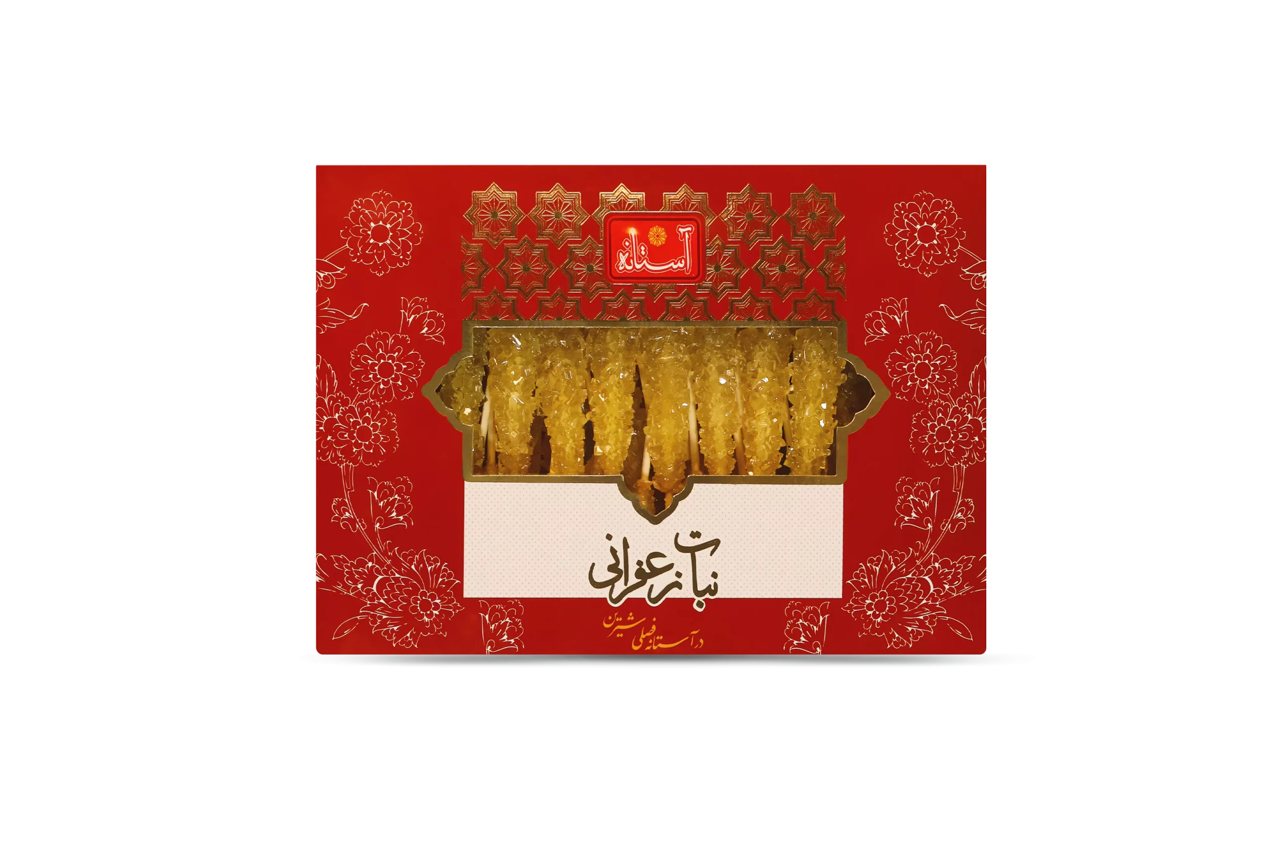 این نوع نبات از ترکیب شکر خالص و درجه یک و آب آشامیدنی تهیه می‌گردد. این محصول گزینه‌ای خاص برای مراسم‌ها و پذیرایی‌های شما می‌باشد.